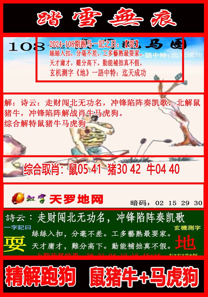 108期:⑨肖 【马狗猪鼠兔牛龙虎猴】 开45狗准