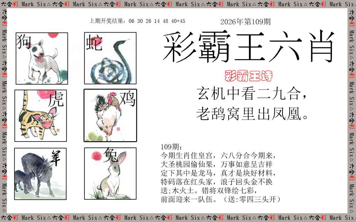 109期:⑨肖 【狗鸡虎猴牛羊马猪蛇】 开??准