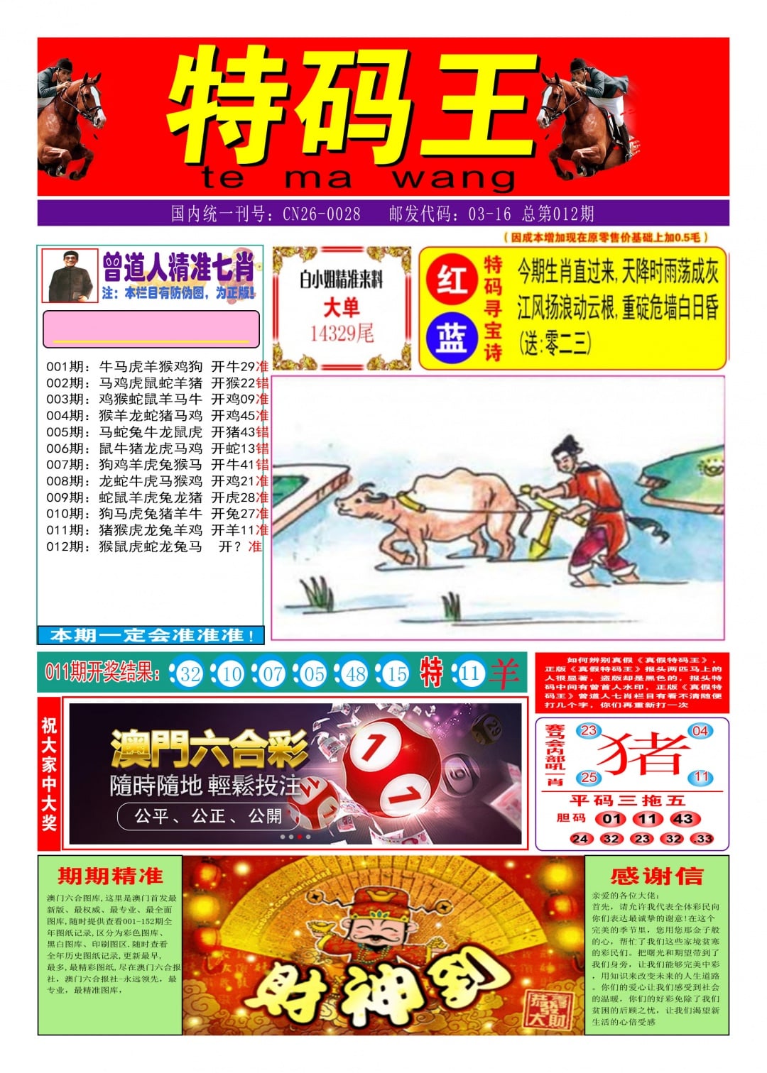 012期:⑨肖 羊蛇马牛猴龙鸡兔狗 开??准